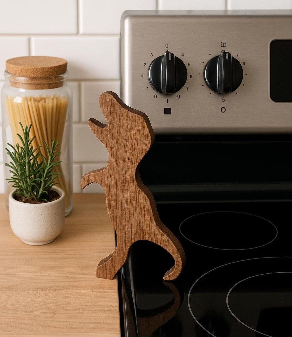 Tame the heat with this prehistoric kitchen helper. Hand-crafted from premium wood and equipped with a strong magnet, the Dino Oven Puller makes moving hot oven racks safe, easy, and roar-some.